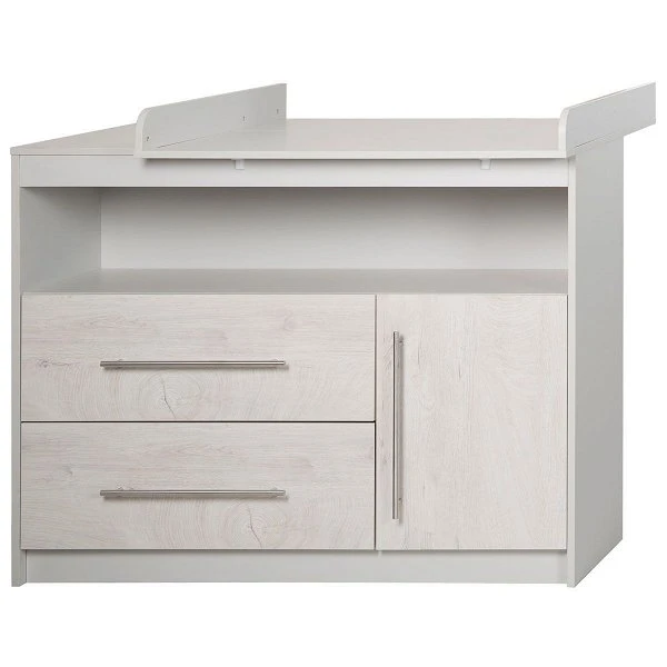 Die roba Wickelkommode ist mit einem abnehmbarem Wickelansatz ausgestattet der sich rechts, mittig oder links oben am Wickeltisch montieren lässt. Im offenen Fach sowie in den 2 Schubladen und hinter der Tür befindet sich praktischer Stauraum für alle benötigten Wickelutensilien. Die Griffe der roba Maren 2 Wickelkommode sind mit hochwertigen Edelstahl-Relinggriffen ausgestattet.