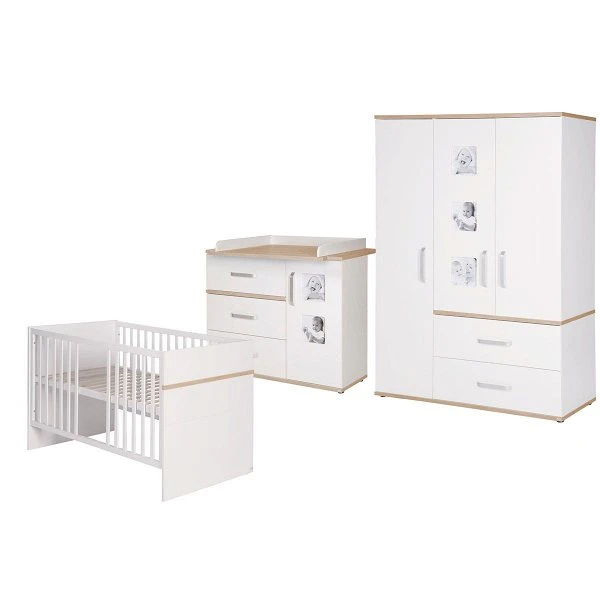 Dekorelemente in ‚Sanremo Eiche‘ sind die Besonderheiten des Roba Pia Kinderzimmers. Bei diesem Kinderzimmer wird das besondere Dekor mit technischem Know-how verbunden. Softclose-Technik für Türen und Schubladen dürfen hier nicht fehlen. Ein besonderer Hingucker sind die integrierten Bilderrahmen – bestückt mit persönlichen Fotos wird jedes Möbelstück zu einem Unikat.