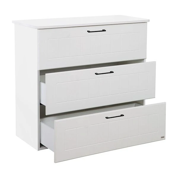 Die roba Sylt Kommode überzeugt mit einem zeitlosen Design und einer aufwendigen Fräsung an den Fronten. Die Kommode hat eine praktische Einteilung und bietet viel Stauraum für Spielzeug, Kleidung und vieles mehr. So kann alles sicher und gut verstaut aufgeräumt werden. Dank der eingebauten Soft-Close Technik lassen sich die Schubladen sanfte und leise Schließen.