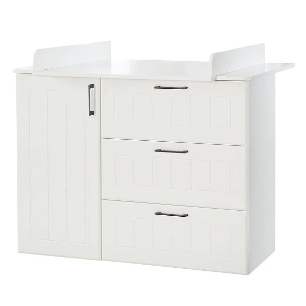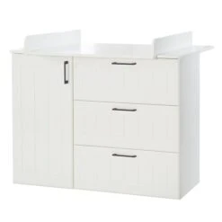Die roba Sylt Wickelkommode überzeugt mit einem zeitlosen Design und einer aufwendigen Fräsung an den Fronten und hat einen abnehmbaren Wickelaufsatz und eine aufwendig gefräste Front. Die eingebaute Softclose-Technik bei der Tür und den Schubladen sorgt für ein sanftes und leises schließen. Die Wickelkommode kann später als normale Kommode genutzt werden.
