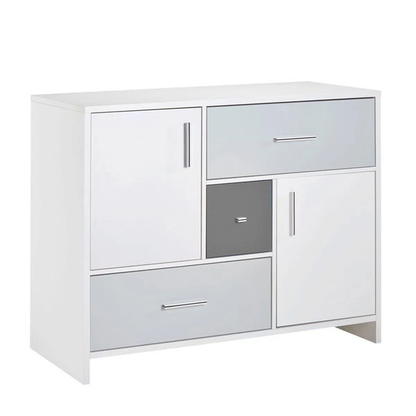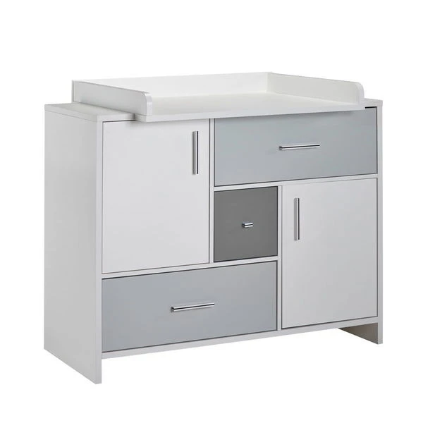 Die Wickelkommode Candy Grey ist mit einem abnehmbaren Wickelaufsatz ausgestattet. So bereitet Ihnen die Kommode auch nach der Wickelzeit noch Freude. Die drei Schübe mit Selbsteinzug und extra starken seitlichen Führungsschienen bieten Platz für Windeln und Pflegemittel. Die beiden Türen sind mit Soft-Close ausgestattet.