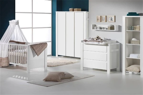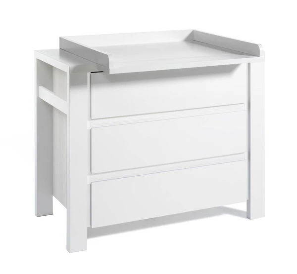 Die Wickelkommode Milano weißist mit einem abnehmbaren Wickelaufsatz ausgestattet. Die drei langen Schübe mit Selbsteinzug bieten viel Platz für Windeln und Pflegemittel.