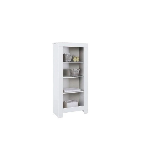 Das Standregal besitzt vier offene Ablagefächer