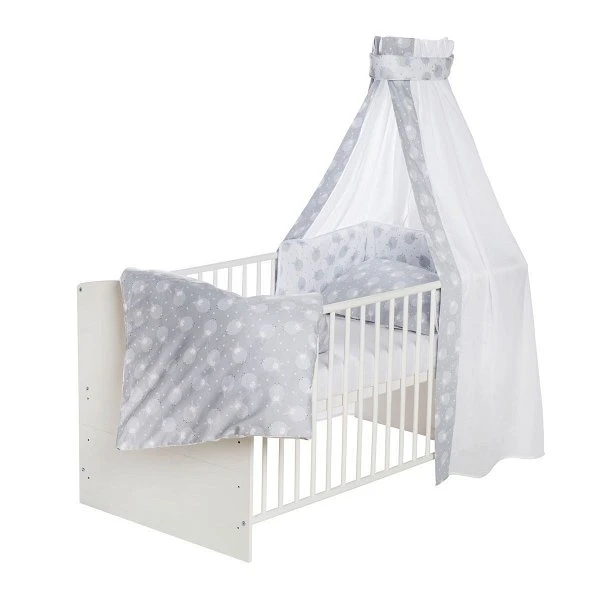 Mit dem vierteiligen Bettset der Serie Schäfchen grau runden Sie Ihr Schardt Kinderbett harmonisch ab.
