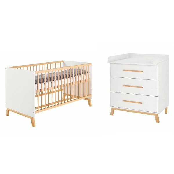 Das Schardt Venice Sparset ist in Dekor weiß gehalten. Es ist nicht nur chic sondern auch komplett ausgestattet mit Wickelauflage für die Kommode und Umbauseiten, um das Babybett zu gegebener Zeit in ein Juniorbett umzuwandeln.