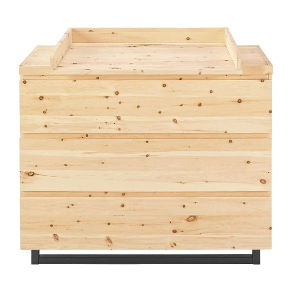 Die Wickelkommode Zirbenholz ist mit einem abnehmbaren Wickelaufsatz ausgestattet. So bereitet Ihnen die Kommode auch nach der Wickelzeit noch Freude. Die drei Schübe mit Selbsteinzug und extra starken seitlichen Führungsschienen bieten viel Platz für Windeln und Pflegemittel. Sockel schwarz lackiert.