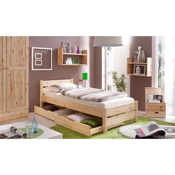- Einzelbett Bora aus massivem Kiefernholz natur