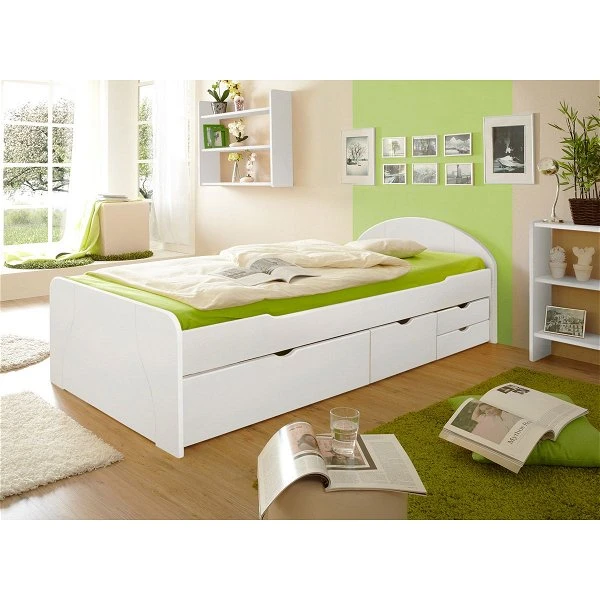 Ticaa Erna Schubkastenbett Kiefer weiß – 90 x 200 cm