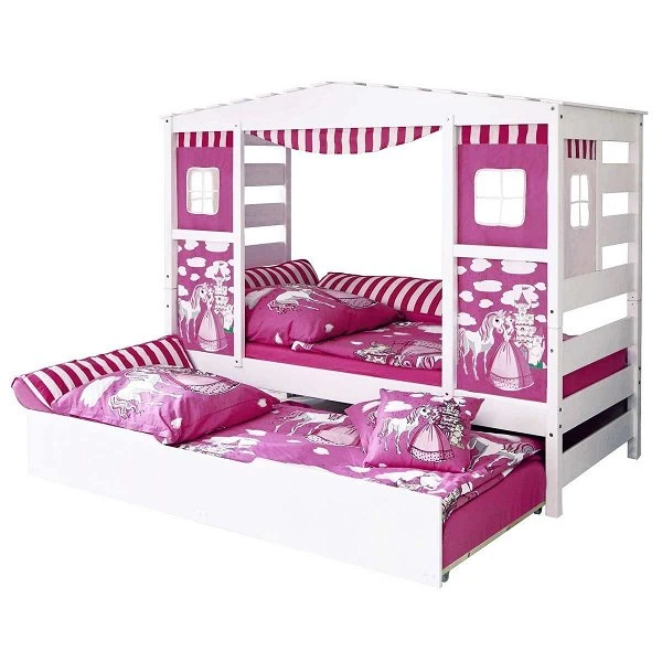 Ticaa Hausbett Horse Rosa Kiefer Weiß inkl. Bettkasten Marianne – Dessin: Horse Rosa
