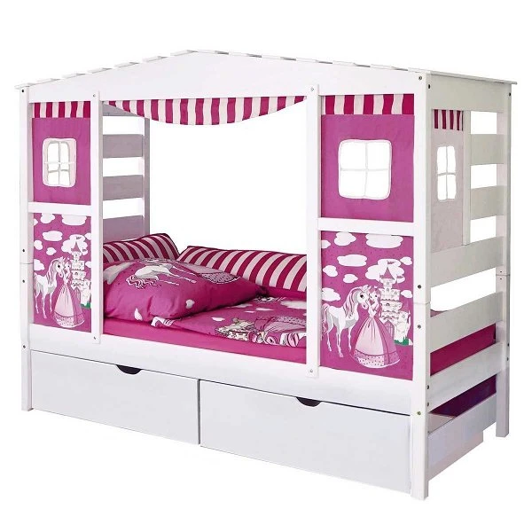 - Hausbett inkl. Vorhang und Schubkästen