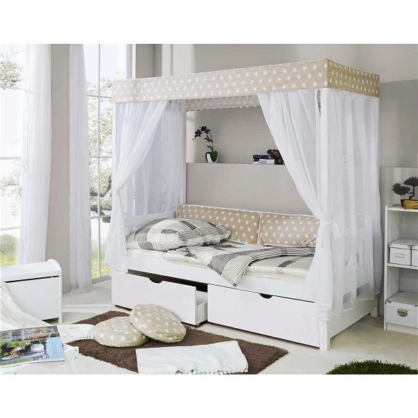 Ticaa Himmelbett Stern Beige Kiefer weiß – inkl. 2 Schubkästen