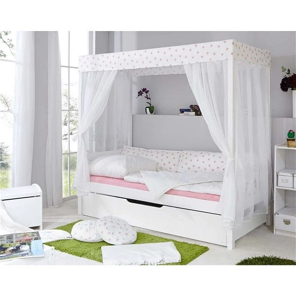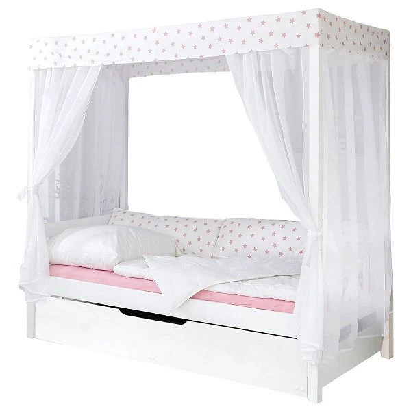Ticaa Himmelbett Stern Weiß-Rosa Kiefer weiß – inkl. Bettkasten