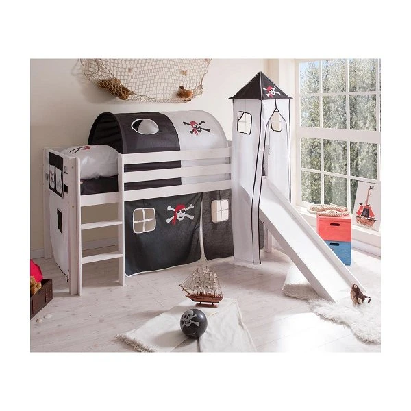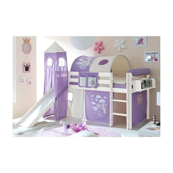 Der Traum eines jeden Kindes! In einer „Höhle“ schlafen, morgens gut gelaunt herunter rutschen und unten im Versteck spielen. Der Turm verleiht dem Ticaa Kasper Rutschbett den Charme einer Burg und dem Besitzer leuchtende Augen. Dank verschiedener Vorhangsstoffe kann das Gesamtbild ganz nach Wunsch angepasst werden, egal ob Mädchen oder Junge.