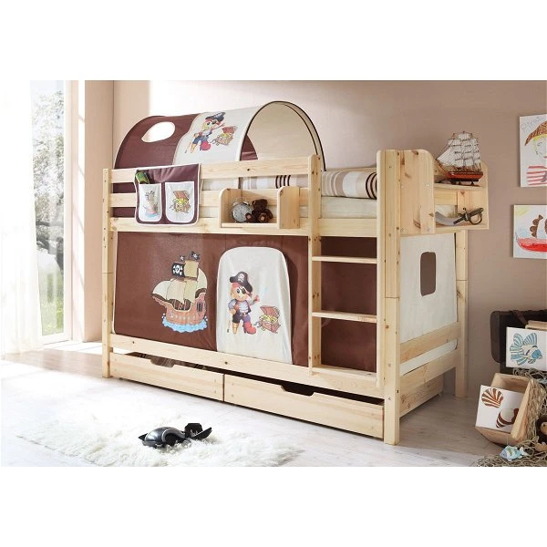 Mit dem Ticaa Marcel Etagenbett gibt es keine Streiterei mehr wer oben oder unten schlafen darf! Das untere Bett schafft dank Vorhang eine „höhlenartige“ Atmosphäre, während das obere mit dem optional erhältlichen Tunnel einen gemütlichen Charakter besitzt. Die massive Bauweise, hohe Pfostenstärke und Fallschutz sorgen für die nötige Sicherheit. Dank vieler praktischer Ergänzungsprodukte kann dieses Bett auf jeden Geschmack ausgerichtet werden.