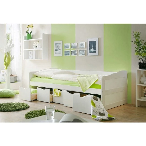 Ticaa Maria Sofabett mit Schubkästen Kiefer weiß – 90 x 200 cm