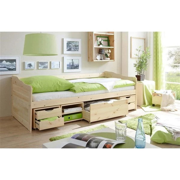 Ticaa Marlies Sofabett mit Schubkästen Kiefer natur – 90 x 200 cm