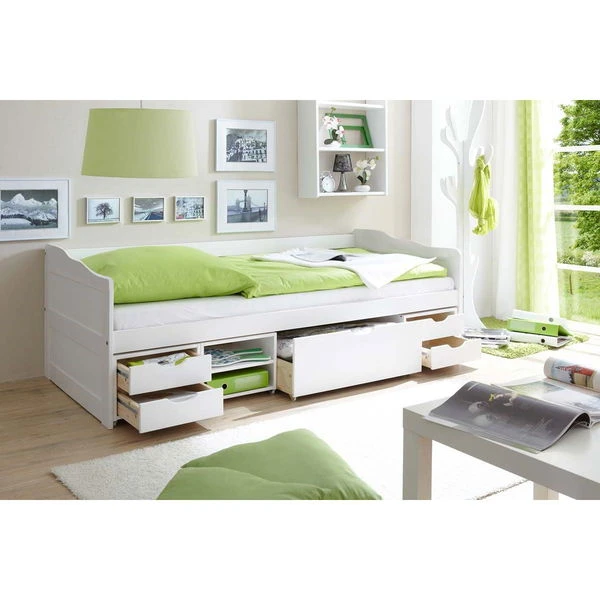 Ticaa Marlies Sofabett mit Schubkästen Kiefer weiß – 90 x 200 cm