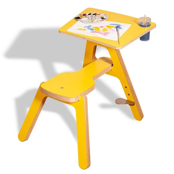 Die Timkid Clexo Malbank ist eine designstarke und ergonomische Lösung für kleine Künstler im Kindergarten- und Grundschulalter. Die Malbank verfügt über eine geneigte Tischplatte und 3-fach höhenverstellbare Fußstützen, um eine korrekte Sitzposition zu gewährleisten. Hergestellt aus massivem Multiplex mit einer robusten HPL Beschichtung, ist die Clexo Malbank extrem widerstandsfähig gegen Kratzer und Abrieb. Zusätzlich enthält die Malbank einen Kunststoffbecher, der in die Tischplatte eingelassen werden kann. Die Timkid Clexo Malbank kann bis zu 50 kg belastet werden und bietet somit eine langlebige und stabile Lösung für kreative Aktivitäten.