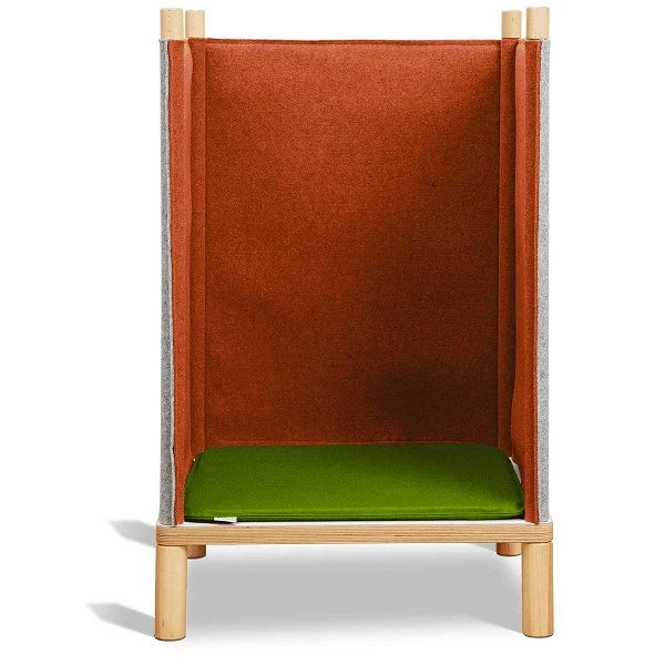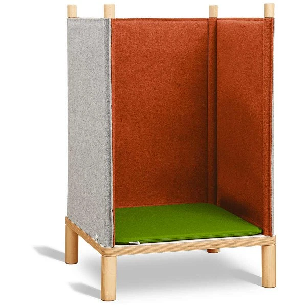 Die Wollfilzwände des Timkid Sila Sessel schaffen eine akustisch ruhige Zone zum ungestörten Lesen, Spielen oder Träumen. Mit dem optionalen auflegbaren Wollfilzdach wird es sogar noch gemütlicher und ruhiger. Die Filzelemente reduzieren zudem Umgebungsgeräusche, also je mehr Elemente, desto besser die schalldämmende Wirkung.