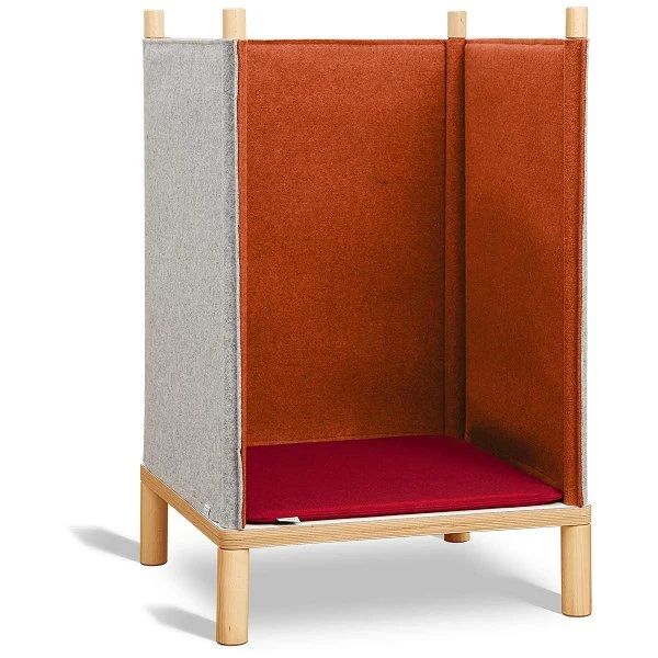 Die Wollfilzwände des Timkid Sila Sessel schaffen eine akustisch ruhige Zone zum ungestörten Lesen, Spielen oder Träumen. Mit dem optionalen auflegbaren Wollfilzdach wird es sogar noch gemütlicher und ruhiger. Die Filzelemente reduzieren zudem Umgebungsgeräusche, also je mehr Elemente, desto besser die schalldämmende Wirkung.