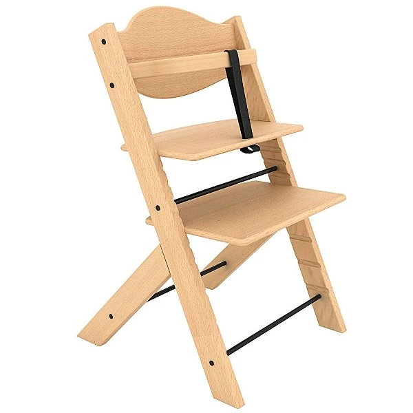 Der Treppy Hochstuhl ist aus massivem Buchenholz gefertigt und ist einfach montierbar, die Sitzfläche und die Fußstütze sind in der Höhe und Tiefe anpassbar.