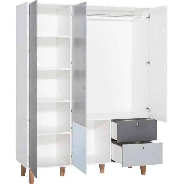 VOX Concept Baby Kleiderschrank 3-türig white/grey/graphite/sky blue