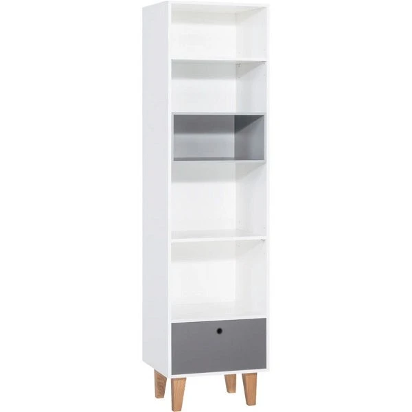 Das VOX Concept Bücherregal verfügt über 5 offene Fächer und 1 Schubkasten und ist der beste Platz um die vielen Bücher unter zu bringen. Eins der Fächer ist in einer Akzentfarbe als Hingucker gehalten.