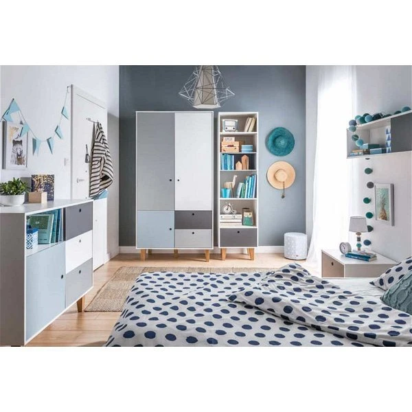 VOX Concept Jugendzimmer 2türig white/grey/graphite/sky blue