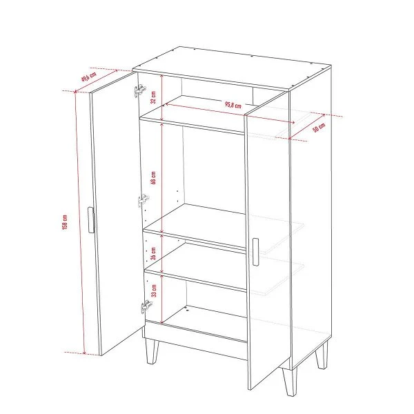 Maße: 100 × 55 × 186,5 cm (B x T x H)