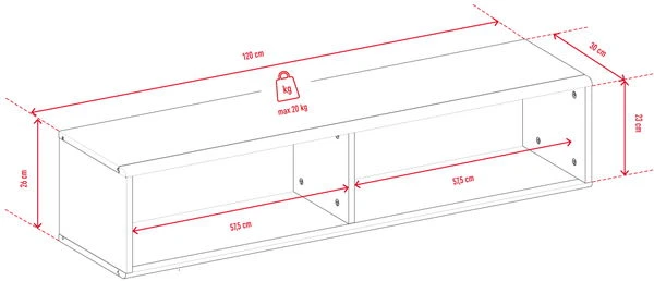 Maße: 120 x 30 x 26,5 cm (B x T x H)