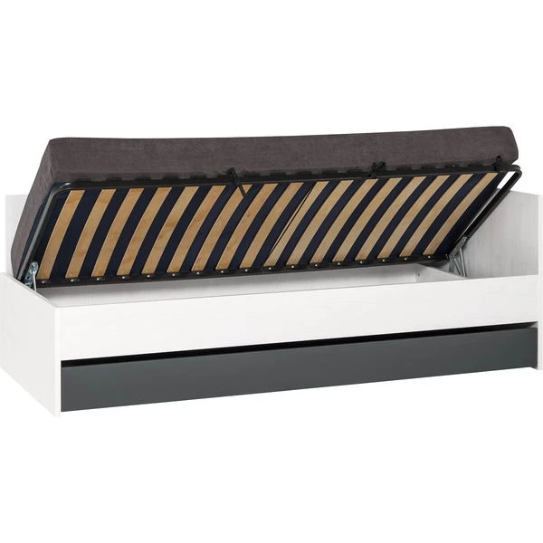 Das VOX Nest Sofabett eignet sich ideal für kleine Zimmer und hat an zwei Seiten einen erhöhten Rand. Unter der Liegefläche befindet sich ein geräumiger Bettkasten über die ganze Breite und Länge des Bettes.