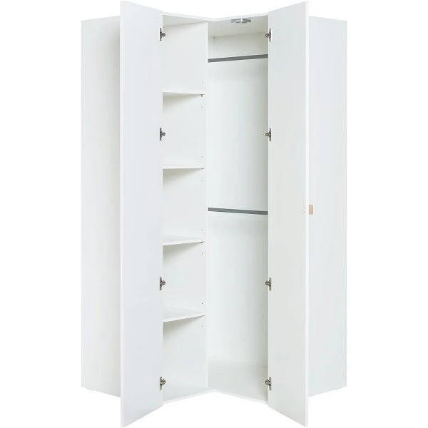 Der VOX Stige Eckkleiderschrank bietet viel Platz für Kleidung und mehr. Im Inneren des Kleiderschrankes befinden sich 4 Einlegeböden und 2 Kleiderstangen.