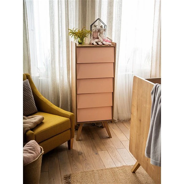 Die VOX Vintage schmale Kommode ist genau das Richtige für Retro-Fans und Pastell-Liebhaber. Durch die Kombination aus klassischem Design und warmen Farben entsteht im Kinderzimmer ein gemütlich, behagliches Gefühl.