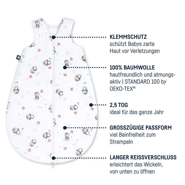 Das hautfreundliche, atmungsaktive Baumwoll-Jersey gibt dem Zöllner Jersey Schlafsack ein überragendes hohes Maß an Komfort und Geborgenheit. Durch die weiche Fütterung mit Klimavlies ist der Zöllner Jersey Schlafsack für das ganze Jahr geeignet.