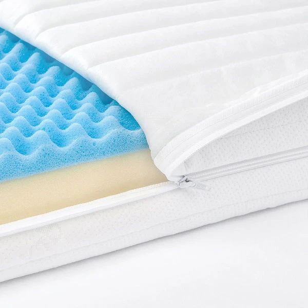 Die zweischichtige Babymatratze Jona bietet hervorragenden Schlafkomfort durch den Einsatz einer mittelweichen Babyseite aus Kaltschaum mit Noppenprofil und einer stabilen Kleinkindseite aus Kaltschaum.